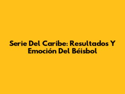 Serie Del Caribe: Resultados Y Emoción Del Béisbol