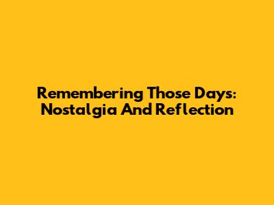Remembering "Those Days": Nostalgia And Reflection