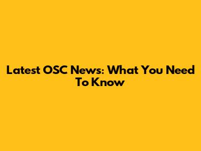Latest OSC News: What You Need To Know
