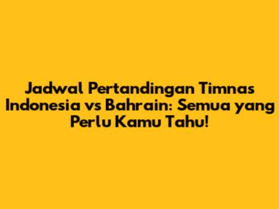 Hai guys! Siapa di sini yang fans berat Timnas Indonesia? Pasti lagi pada penasaran kan sama jadwal pertandingan seru antara Timnas Indonesia melawan Bahrain? Nah, tenang, kalian udah datang ke tempat yang tepat! Di artikel ini, kita bakal kupas tuntas segala hal tentang jadwal pertandingan ini. Mulai dari tanggal, waktu, lokasi, sampai link buat nonton live streaming-nya. Jadi, siap-siap buat catat tanggalnya dan jangan sampai ketinggalan keseruan pertandingan ini ya!