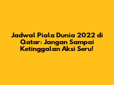 Guys, siapa yang udah gak sabar nungguin Piala Dunia 2022 di Qatar? Pasti pada semangat banget kan buat dukung timnas jagoan kalian dan nikmatin setiap pertandingan seru. Nah, biar kalian gak ketinggalan momen penting, kali ini kita bakal bahas lengkap tentang jadwal Piala Dunia 2022 yang bakal tayang live! Jadi, siap-siap catat tanggalnya dan pasang alarm biar gak kelewatan satu pun gol spektakuler.