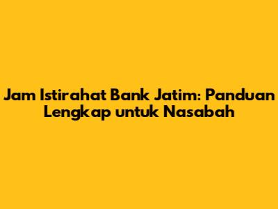 Hai, teman-teman! Pernahkah kalian bertanya-tanya, jam istirahat Bank Jatim itu jam berapa? Atau mungkin kalian sedang merencanakan kunjungan ke Bank Jatim dan ingin tahu kapan waktu terbaik untuk datang? Nah, kalian berada di tempat yang tepat! Artikel ini akan membahas secara mendalam mengenai jadwal istirahat Bank Jatim, memberikan informasi yang jelas dan mudah dipahami, serta tips-tips bermanfaat agar kunjungan kalian ke bank berjalan lancar. Jadi, siapkan diri kalian untuk mendapatkan informasi lengkap mengenai waktu istirahat Bank Jatim, ya!