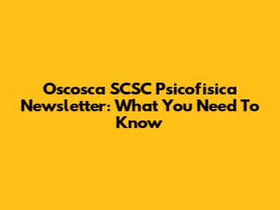 Oscosca SCSC Psicofisica Newsletter: What You Need To Know
