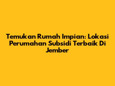Temukan Rumah Impian: Lokasi Perumahan Subsidi Terbaik Di Jember