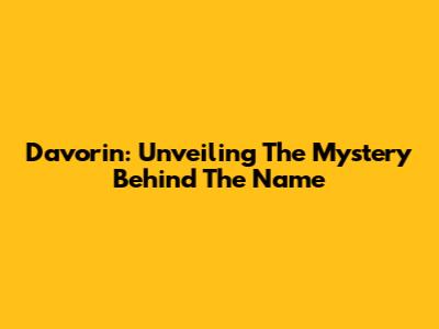 Davorin: Unveiling The Mystery Behind The Name