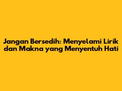 Jangan bersedih adalah lebih dari sekadar rangkaian kata; ia adalah ungkapan yang merangkum esensi dari pengalaman manusia. Dalam artikel ini, kita akan menyelami lirik lagu yang mengajak kita untuk tidak larut dalam kesedihan, terutama ketika menghadapi situasi yang sulit. Kita akan mengeksplorasi bagaimana musik, dengan kekuatan ekspresinya, dapat menjadi teman yang setia dalam perjalanan emosional kita. Mari kita telaah lebih dalam, bagaimana lirik lagu jangan bersedih ini mampu memberikan kekuatan dan harapan, bahkan di saat air mata mengalir.