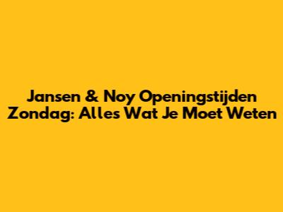 Hey guys! Ben je op zoek naar Jansen & Noy openingstijden op zondag? Of je nu een ervaren shopper bent of gewoon lekker wilt rondneuzen, het is altijd handig om te weten wanneer je terecht kunt. In dit artikel duiken we diep in de wereld van Jansen & Noy, inclusief hun zondag openingstijden, handige shopping tips en wat je nog meer kunt verwachten. Klaar om te shoppen? Let's go!