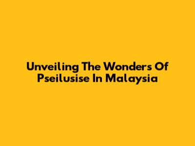 Unveiling The Wonders Of Pseilusise In Malaysia