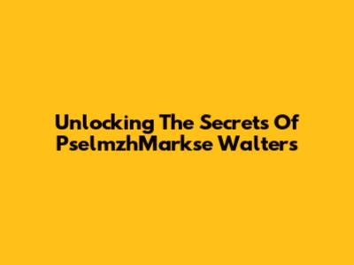 Unlocking The Secrets Of PselmzhMarkse Walters