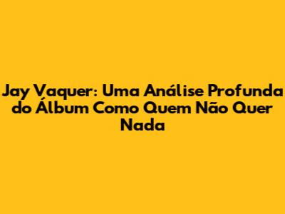 Jay Vaquer construiu um legado duradouro na música brasileira. Sua voz, suas letras e suas melodias marcaram a vida de muitos fãs. 'Como Quem Não Quer Nada' é apenas um exemplo da sua genialidade e da sua capacidade de criar músicas que tocam o coração e a alma. O álbum é um marco na sua carreira e um presente para todos os amantes da música. Jay continua a inspirar e a emocionar com seus trabalhos, mostrando que a música é uma forma de expressão e de conexão humana que transcende o tempo e as fronteiras. O legado de Jay Vaquer é a sua música, que continuará a emocionar e a inspirar por muitos anos. A influência de Jay pode ser vista em muitos artistas contemporâneos, que buscam em suas letras e melodias uma fonte de inspiração. É um artista que marcou a história da música brasileira, e que seu trabalho será lembrado e celebrado por muitos anos.