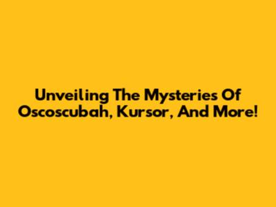 Unveiling The Mysteries Of Oscoscubah, Kursor, And More!