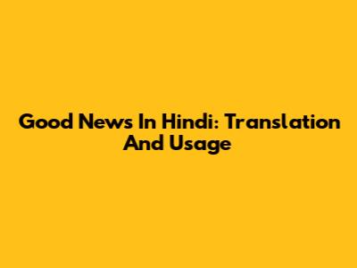 Good News In Hindi: Translation And Usage