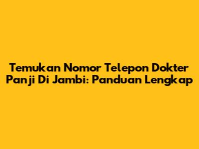 Temukan Nomor Telepon Dokter Panji Di Jambi: Panduan Lengkap