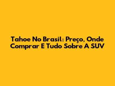 Tahoe No Brasil: Preço, Onde Comprar E Tudo Sobre A SUV