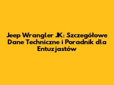 Jeep Wrangler JK - co to takiego? No cóż, to ikona świata off-roadu, symbol przygody i wolności. Ten artykuł to kompletny przewodnik po trzeciej generacji Wranglera, czyli modelu JK, produkowanym w latach 2007-2018. Znajdziesz tu wszystko, co powinieneś wiedzieć – od danych technicznych, przez historię modelu, aż po porady dotyczące eksploatacji i wyboru odpowiedniej wersji. Zatem, drodzy miłośnicy jazdy terenowej, zapnijcie pasy i ruszamy w głąb fascynującego świata Jeepa Wranglera JK!