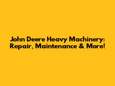 John Deere Heavy Machinery: Repair, Maintenance & More!