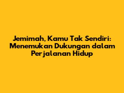 Jemimah, kamu tidak sendirian. Kamu kuat, kamu mampu, dan kamu berharga. Ingatlah bahwa kamu memiliki kekuatan dalam diri untuk mengatasi tantangan hidup. Dengan memahami perasaanmu, membangun jaringan dukungan, merangkul perubahan, dan menginspirasi diri sendiri, kamu bisa melewati masa-masa sulit dan mencapai potensi penuhmu. Jangan pernah menyerah pada dirimu sendiri, dan ingatlah bahwa selalu ada harapan. Kami semua ada di sini untuk mendukungmu. Kamu bisa melewati ini, Jemimah. Kami percaya padamu. Tetaplah kuat, tetaplah bersemangat, dan jangan pernah berhenti percaya pada dirimu sendiri! Kamu luar biasa! Teruslah melangkah, Jemimah, karena kamu tak sendiri, dan jalanmu masih panjang dan penuh makna.