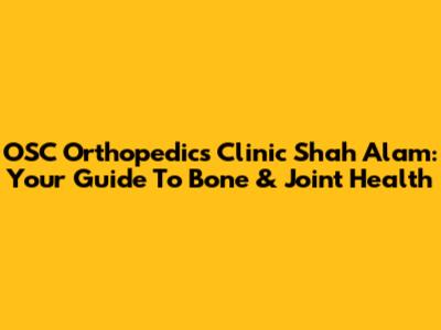 OSC Orthopedics Clinic Shah Alam: Your Guide To Bone & Joint Health