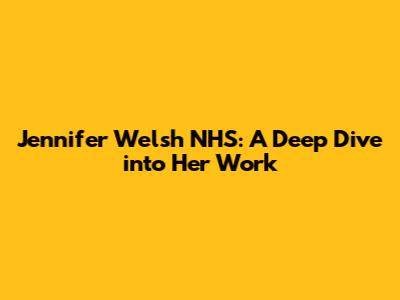 Hey there, healthcare enthusiasts! Ever heard the name Jennifer Welsh buzzing around the NHS circles? If not, you're in for a treat! Today, we're diving deep into the world of Jennifer Welsh and her contributions to the National Health Service. We'll explore her role, her impact on patient care, and why her name is synonymous with dedication in the medical field. So, grab a cuppa, settle in, and let's unravel the story of Jennifer Welsh and the NHS!