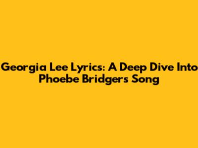 Georgia Lee Lyrics: A Deep Dive Into Phoebe Bridgers' Song