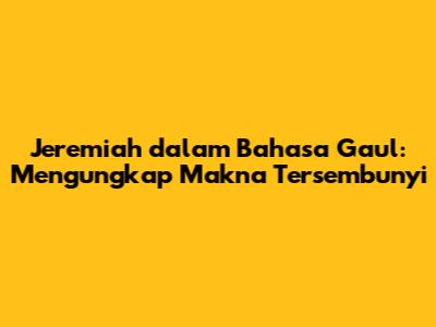 Jeremiah: Arti, Asal Usul, Dan Penggunaannya Dalam Bahasa Gaul