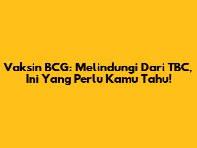 Vaksin BCG: Melindungi Dari TBC, Ini Yang Perlu Kamu Tahu!