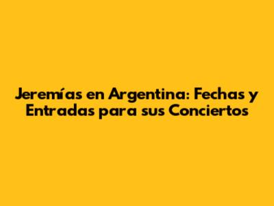 Jeremías En Argentina: Entradas Y Fechas