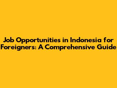 Hey guys! So, you're looking for job opportunities in Indonesia as a foreigner? Awesome! Indonesia is a vibrant country with a booming economy, and there are tons of opportunities out there. But navigating the job market can be tricky, especially when you're not a local. Don't worry, though; this guide is here to help you out. We'll break down everything you need to know, from the types of jobs available to visa requirements and where to start your search. Let's dive in and get you closer to your dream job in Indonesia!