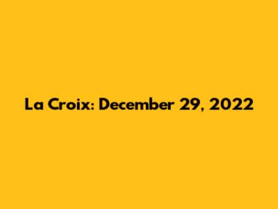 La Croix: December 29, 2022