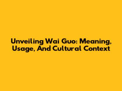 Unveiling 'Wai Guo': Meaning, Usage, And Cultural Context