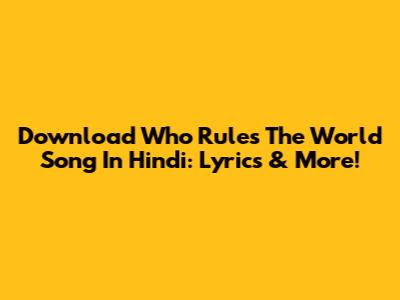 Download 'Who Rules The World' Song In Hindi: Lyrics & More!