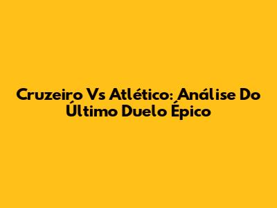 Cruzeiro Vs Atlético: Análise Do Último Duelo Épico