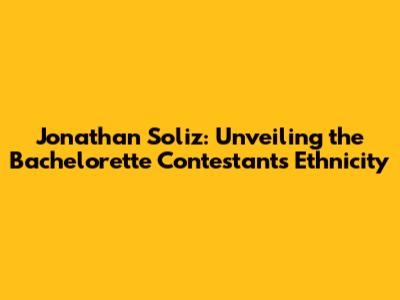 Hey, guys! Ever wonder about the background of your favorite Bachelorette contestants? Today, we’re diving deep into the ethnicity of Jonathan Soliz, one of the standout personalities from the show. Understanding someone's background helps us appreciate their journey and perspective, so let’s get right into it! Jonathan Soliz has captured the hearts of many viewers with his charm and charisma. As fans, we're naturally curious about his roots, his heritage, and the cultural influences that have shaped him into the person we see on screen. Ethnicity is more than just a label; it's a tapestry of traditions, values, and experiences passed down through generations. For Jonathan, his ethnicity could play a significant role in his identity, influencing his interactions, beliefs, and the way he approaches relationships, including his quest for love on The Bachelorette. Exploring his background can offer us a richer understanding of who he is and what makes him unique. So, join me as we delve into the available information and try to piece together the story of Jonathan Soliz's ethnicity. Whether it's through interviews, social media, or other sources, we'll explore the clues that give us a glimpse into his heritage. By doing so, we not only satisfy our curiosity but also gain a deeper appreciation for the diversity that makes shows like The Bachelorette so compelling. Let's embark on this journey together and uncover the fascinating details of Jonathan Soliz's ethnic background.