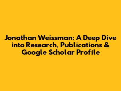 Who is Jonathan Weissman? A Brief Overview