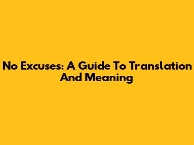 No Excuses: A Guide To Translation And Meaning