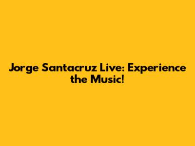 What to Expect at a Jorge Santacruz Live Show