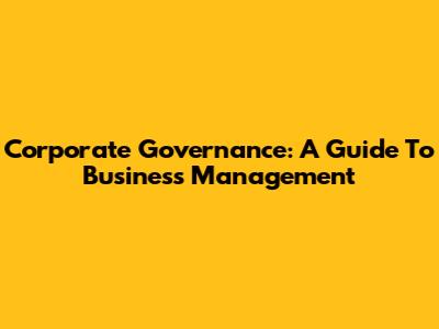 Corporate Governance: A Guide To Business Management