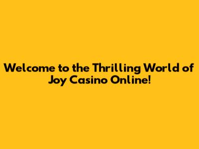 Welcome to the Thrilling World of Joy Casino Online!