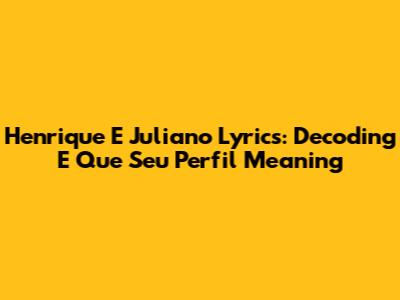Henrique E Juliano Lyrics: Decoding "E Que Seu Perfil" Meaning