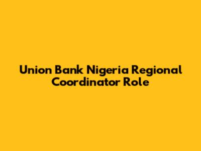Union Bank Nigeria Regional Coordinator Role