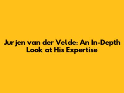Jurjen Van Der Velde: Expert Insights And Profile