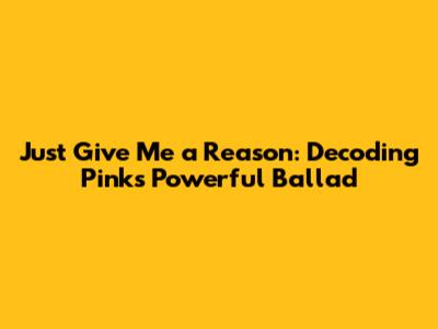 Hey music lovers! Ever gotten chills listening to a song and feeling like it just gets you? Well, that's the magic of "Just Give Me a Reason" by Pink, featuring the amazing Nate Ruess. This song isn't just a catchy tune; it's a raw, emotional journey through the ups and downs of a relationship. We're going to dive deep into the lyrics, the meaning, and why this song continues to resonate with so many people. So, buckle up, grab your headphones, and let's dissect this modern classic! We'll explore the emotional landscape the song paints, examining its themes of love, conflict, and the desperate plea for reconciliation. We'll also dig into the artistic choices that make this song so powerful, from Pink's vocal delivery to the duet with Nate Ruess. Let's get started!