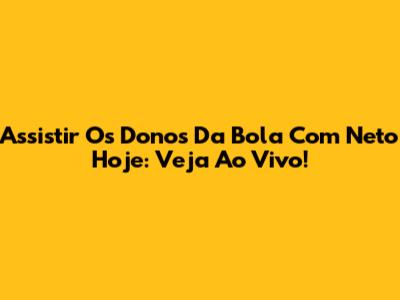 Assistir Os Donos Da Bola Com Neto Hoje: Veja Ao Vivo!