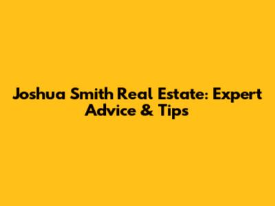 Joshua Smith Real Estate: Expert Advice & Tips