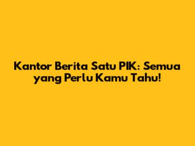 Informasi Terbaru Seputar Kantor Berita Satu PIK