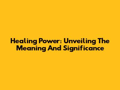 Healing Power: Unveiling The Meaning And Significance