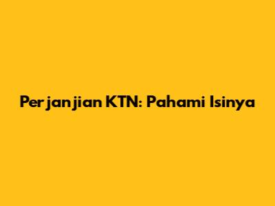 Perjanjian KTN: Pahami Isinya