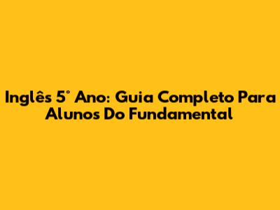 Inglês 5° Ano: Guia Completo Para Alunos Do Fundamental