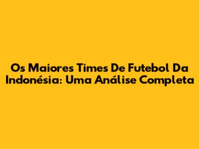 Os Maiores Times De Futebol Da Indonésia: Uma Análise Completa
