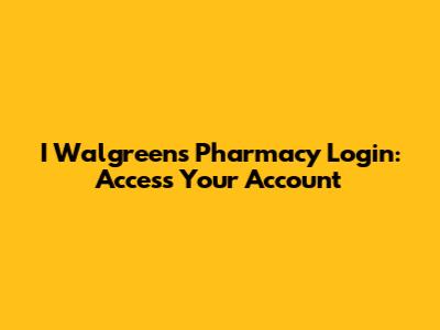 I Walgreens Pharmacy Login: Access Your Account